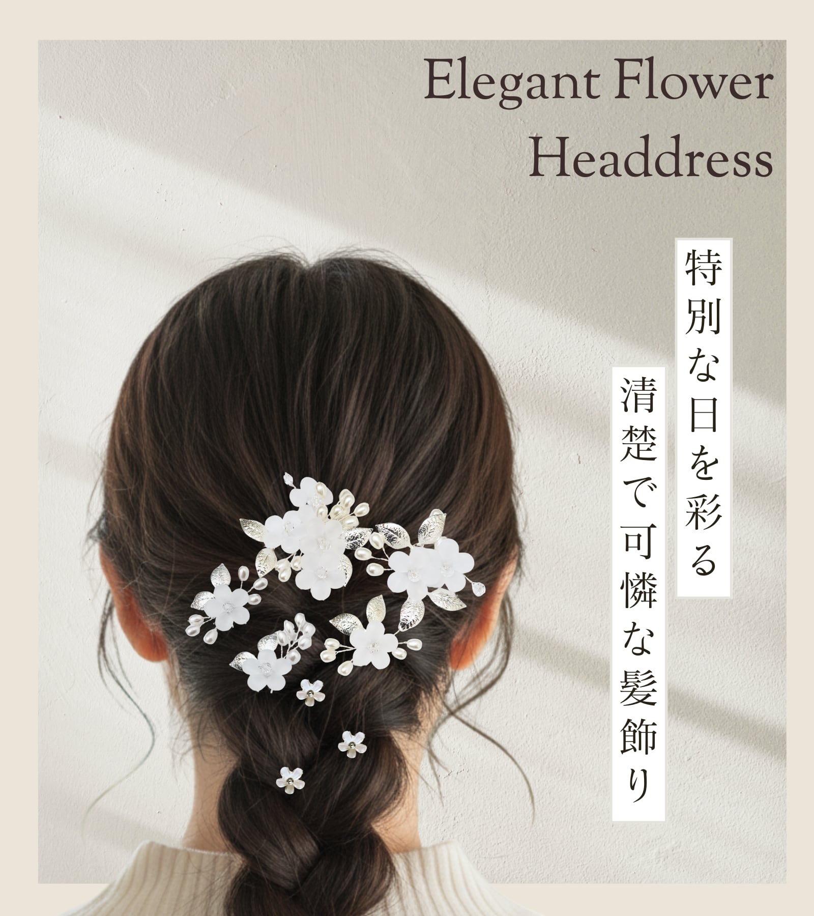 白い花モチーフのヘアアクセサリーが、結婚式・成人式・入学式・卒業式・ひな祭り・夏祭り・七五三など、大切な1日を美しく彩ります。