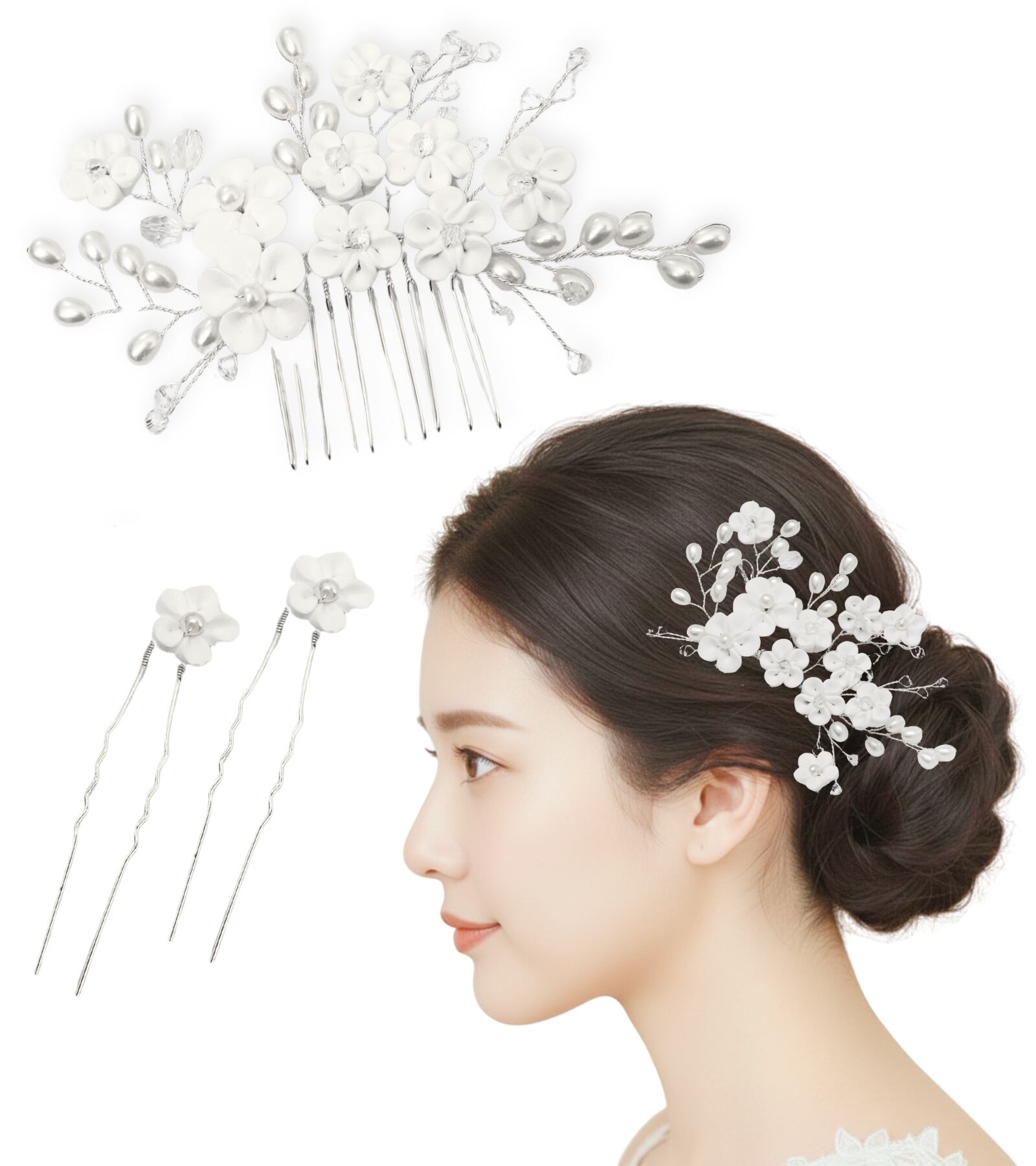 コームやUピンタイプで、まとめ髪やハーフアップにも合わせやすい髪飾りです。